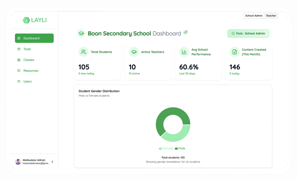 Our platform was designed to make education seamless. Schools and teachers can manage lessons, quizzes, and student progress effortlessly, while students can access learning materials and revision tools anytime. Layli brings everything together in one simple system, making teaching and learning smooth, efficient, and effective.