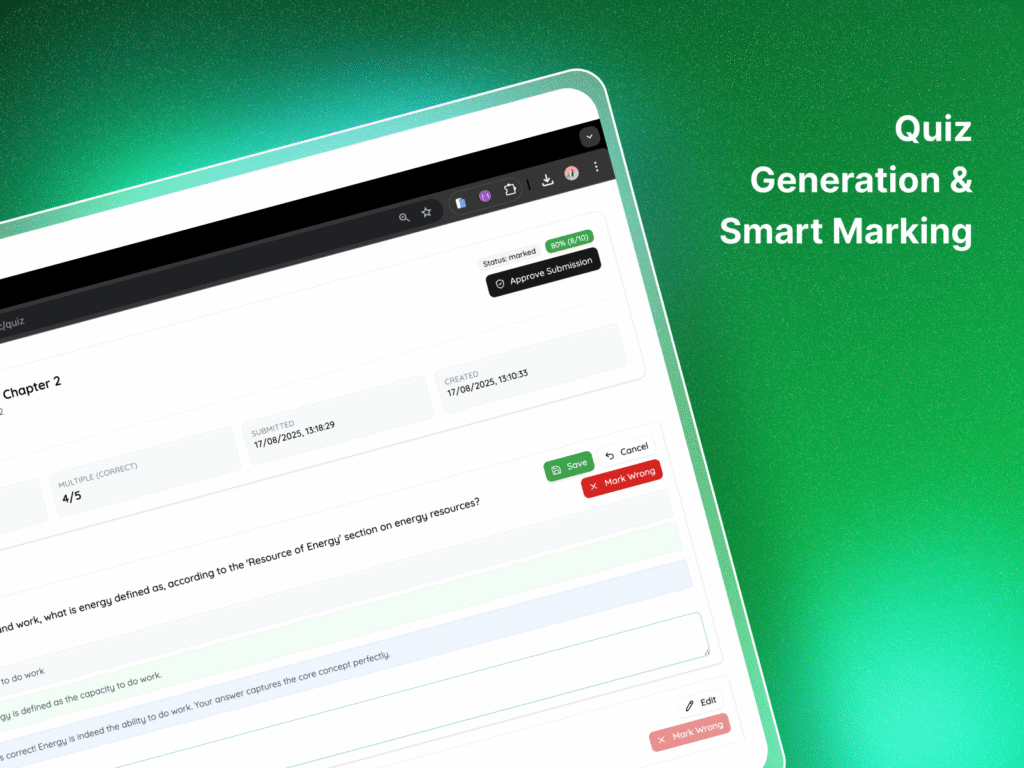 Create quizzes in seconds and let the system handle the grading. Teachers save time, students get instant feedback, and learning becomes more engaging.
