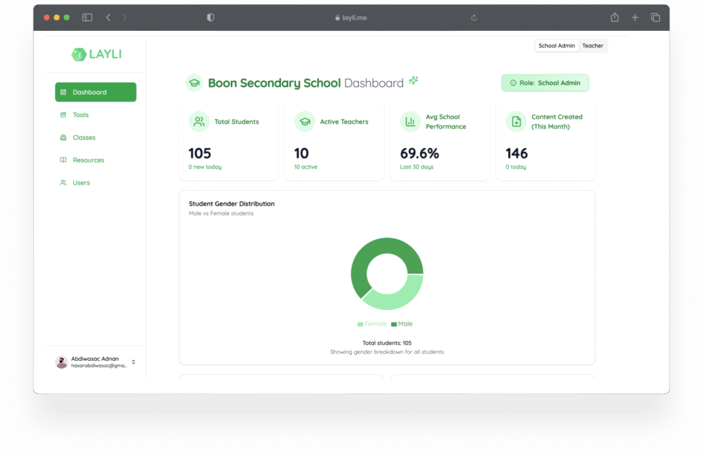 Our platform was designed to make education seamless. Schools and teachers can manage lessons, quizzes, and student progress effortlessly, while students can access learning materials and revision tools anytime. Layli brings everything together in one simple system, making teaching and learning smooth, efficient, and effective.